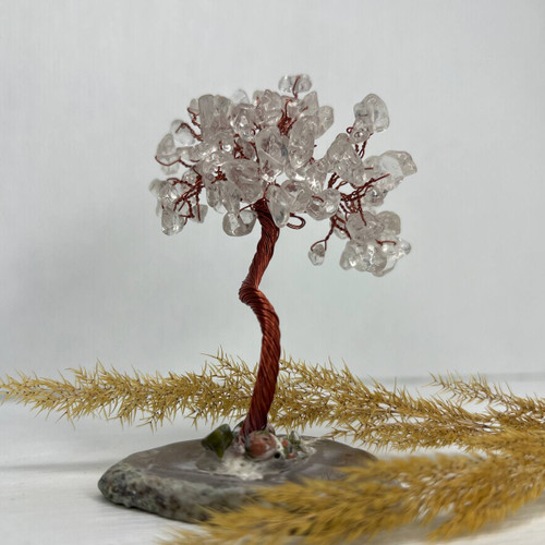 درختچه سنگی کریستال کوارتز با پایه عقیق