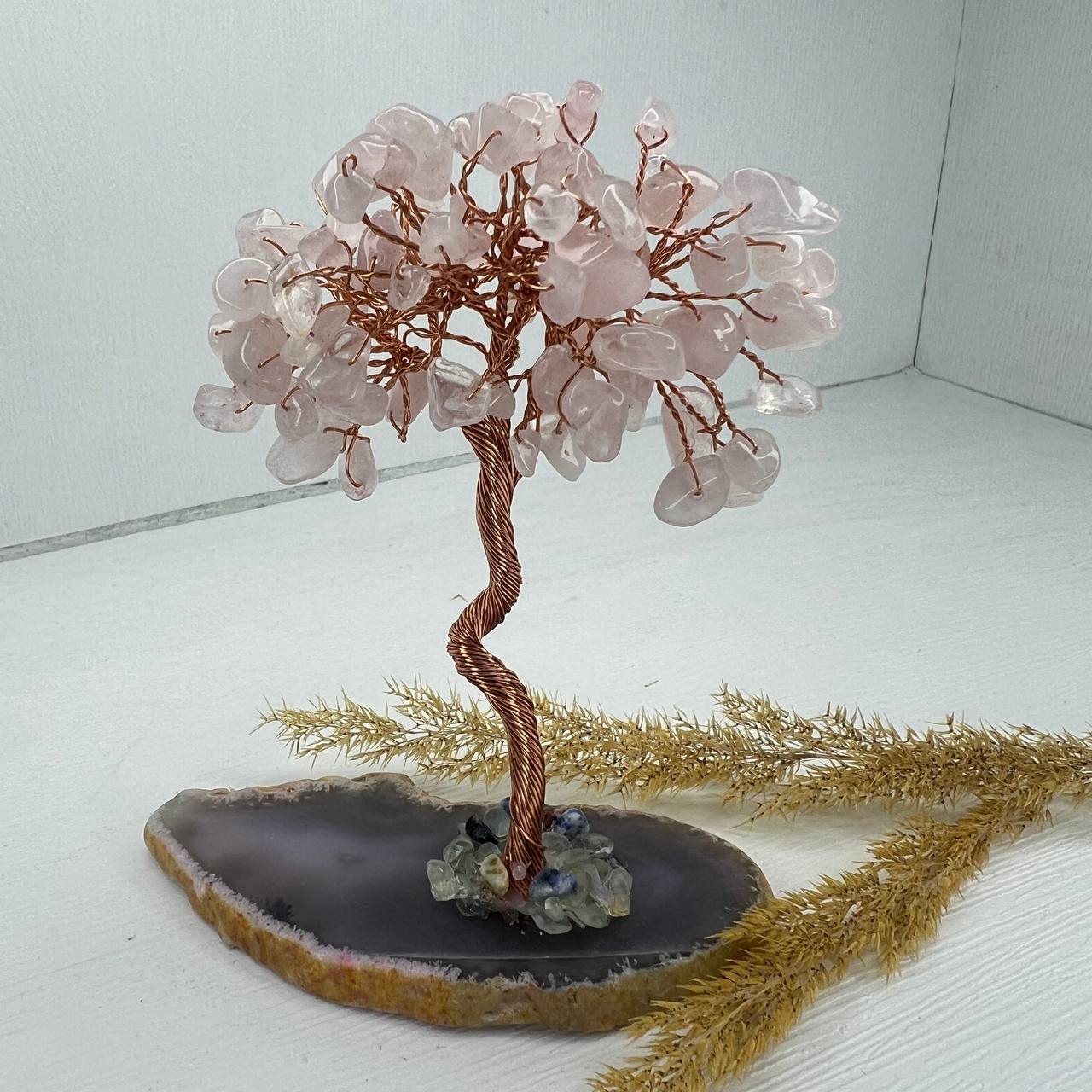 درختچه سنگی رزکوارتز با پایه عقیق