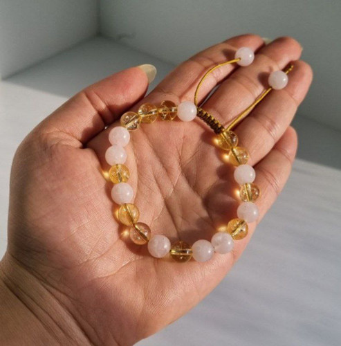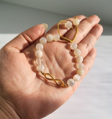 دستبند پلاک بینهایت و سنگ رزکوارتز