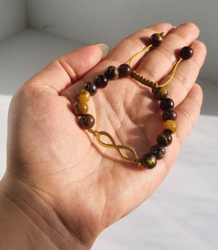 دستبند پلاک بینهایت و سنگ چشم ببر
