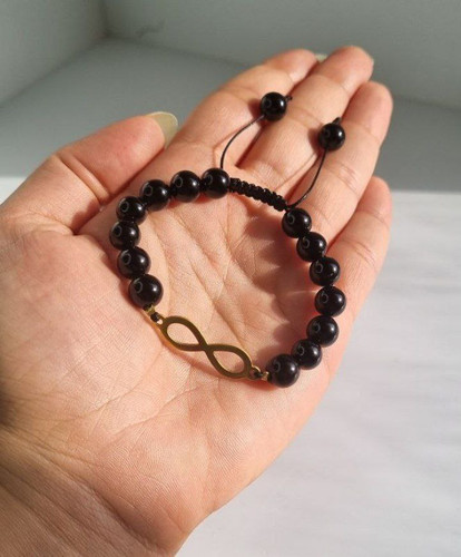 دستبند پلاک بینهایت و سنگ تورمالین سیاه