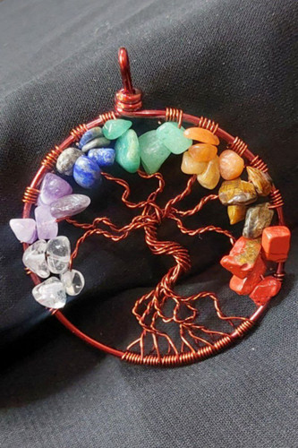 درخت زندگی هفت چاکرا با مفتول مس و هفت سنگ اصلی