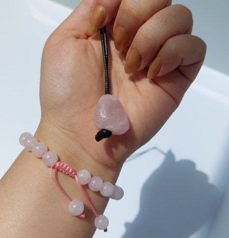 دستبند پلاک بینهایت و سنگ رزکوارتز