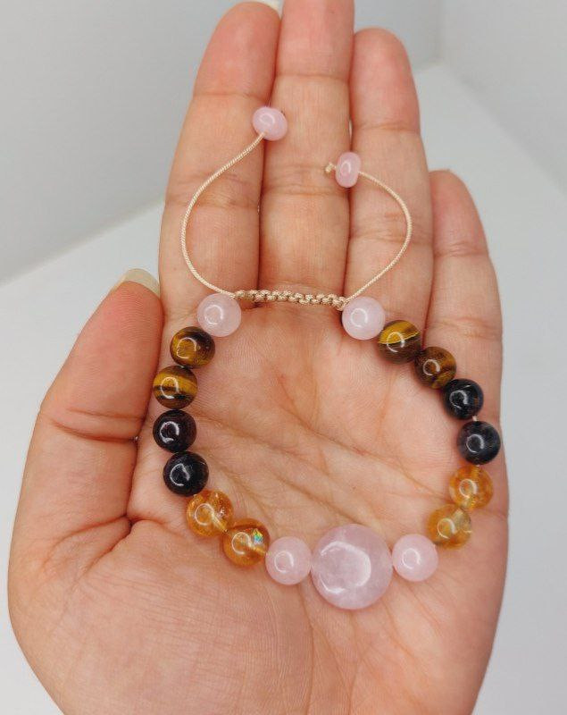 این دستبند مناسب برای کوا ی 2 و 8 شامل سنگهای رزکوارتز،سیترین،چشم ببر و گارنت است.
