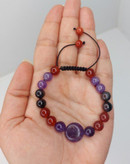 این دستبند مناسب برای کوا ی 9 و شامل سنگهای آمتیست،عقیق سرخ،جاسپر سرخ و گارنت است.