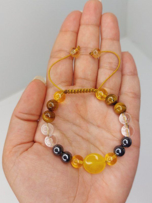 این دستبند مناسب برای کوا ی 6 و 7 شامل سنگهای عقیق زرد،حدید،کریستال کوارتز، چشم ببر و سیترین است.