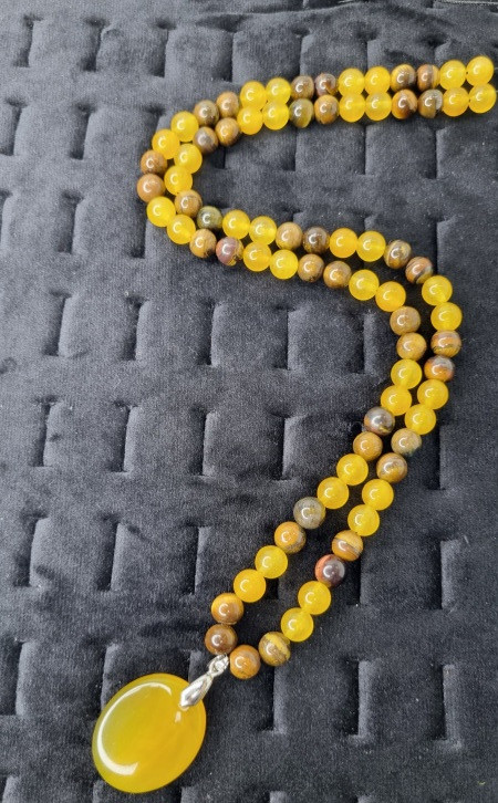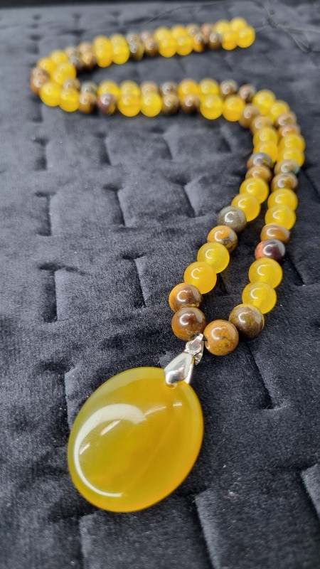 گردنبند (بدون آویز شرف الشمس) با عقیق زرد و چشم ببر