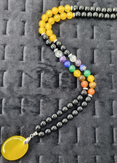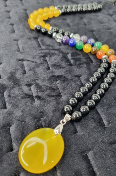 گردنبند (بدون آویز شرف الشمس) با عقیق زرد و هفت چاکرا