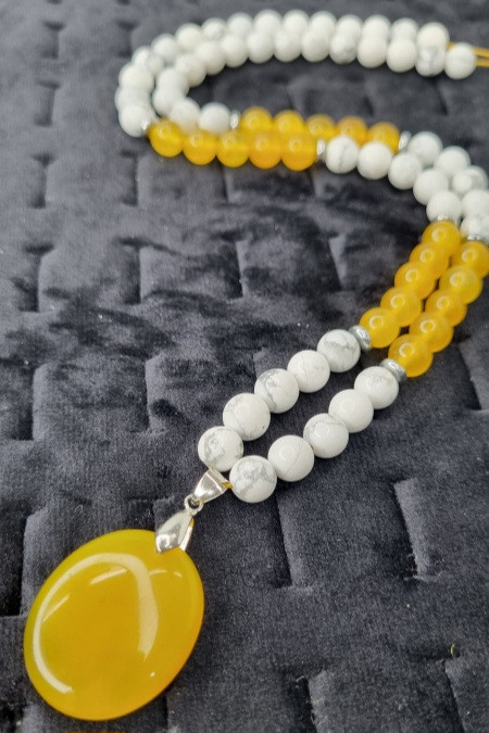 گردنبند (بدون آویز شرف الشمس) با عقیق زرد و هائولیت