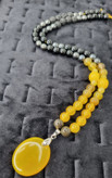 گردنبند (بدون آویز شرف الشمس) با عقیق زرد و حدید و عقیق سلیمانی