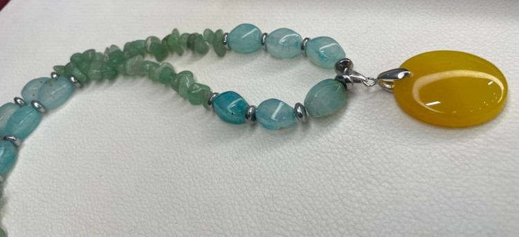 گردنبند عنصر چوب کوانامبر 4 ترکیبی از سنگهای اونتورین و عقیق ابی