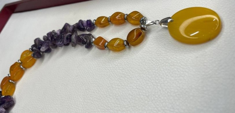 گردنبند عنصر اتش کوانامبر 9 ترکیبی از سنگهای امتسیت و عقیق