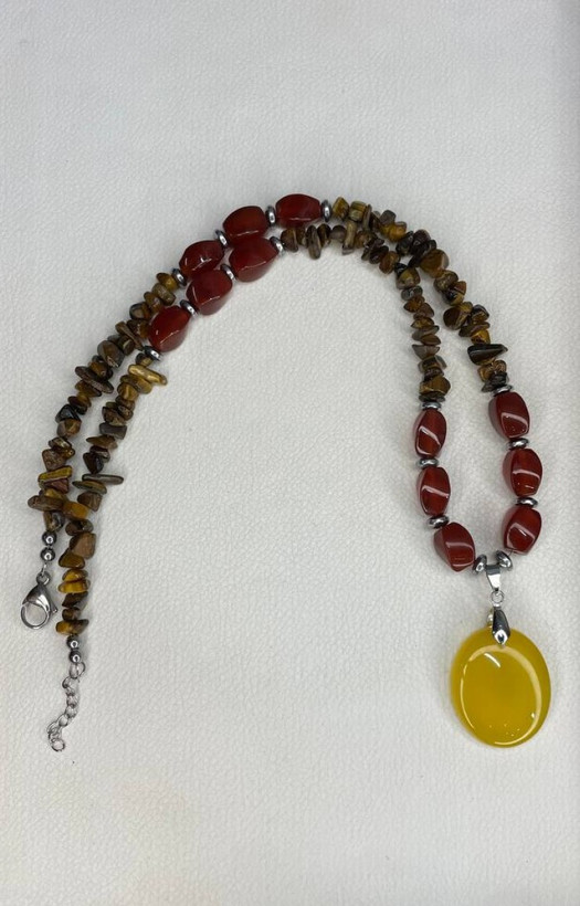 گردنبند عنصر خاک کوانامبر 2 و 8 ترکیبی از سنگهای چشم ببر و عقیق سرخ