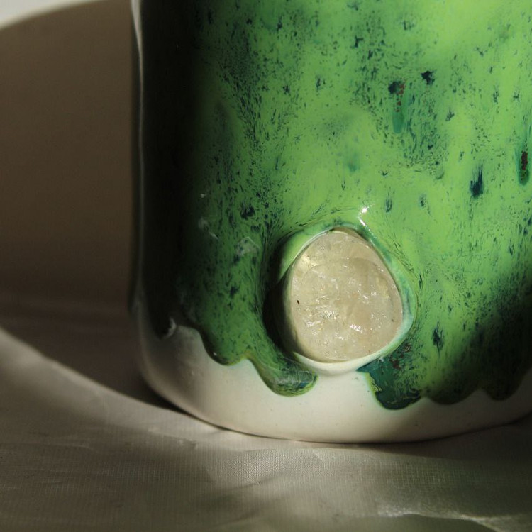 دستساز، جنس سرامیک، بدون سرب، قابل شست و شو، مقاوم، در بدنهی این کار سنگ کریستال کوارتز کار شده