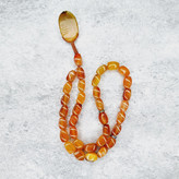 این تسبیح چشمنواز از ۳۳ مهرهی استوانهای و پیچی با رنگ گرم و زندهی نارنجی ساخته شده است. شرابه آن، یک اسلایس طبیعی از عقیق نارنجی است که جلوهای خاص، طبیعی و اصیل به تسبیح میبخشد.