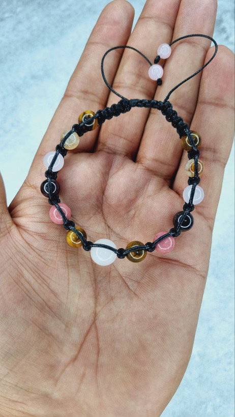 با بسته شدن این دستبند بر روی مچ، انرژی سنگها از طریق چاکراهای دست جذب شده و به تقویت پیوند با زمین و تثبیت انرژیهای پراکنده کمک میکند. این تأثیر به ایجاد حس سنگینی دلنشین، آرامش روانی و تمرکز ذهنی منجر میشود.