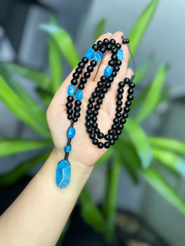 گردنبند سنگ شانس با عقیق آبی و اونیکس سیاه | عنصر آب 💧