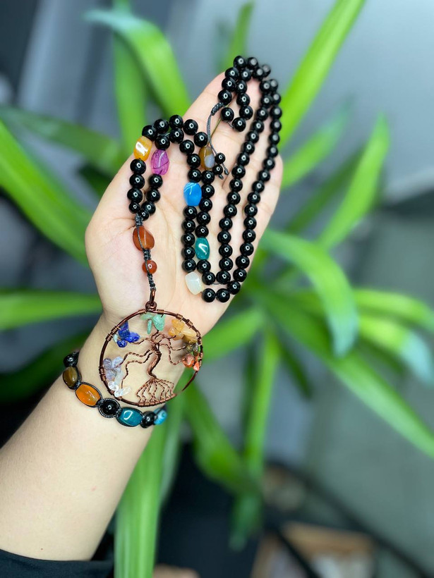 نیمست سنگ شانس با هفت عقیق حلیپیچی و اونیکس سیاه | هماهنگ با هفت چاکرا 🌈✨