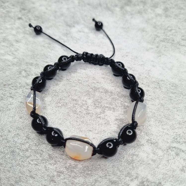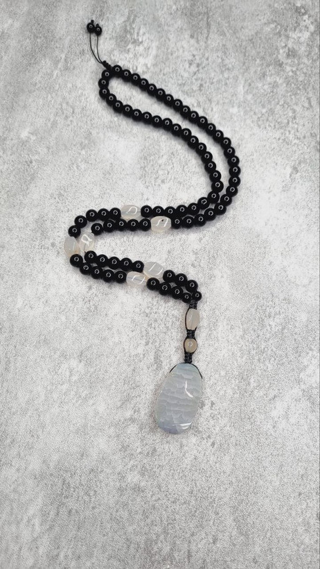 نیمست سنگ شانس با عقیق سفید و اونیکس سیاه | عنصر فلز ⚪️✨