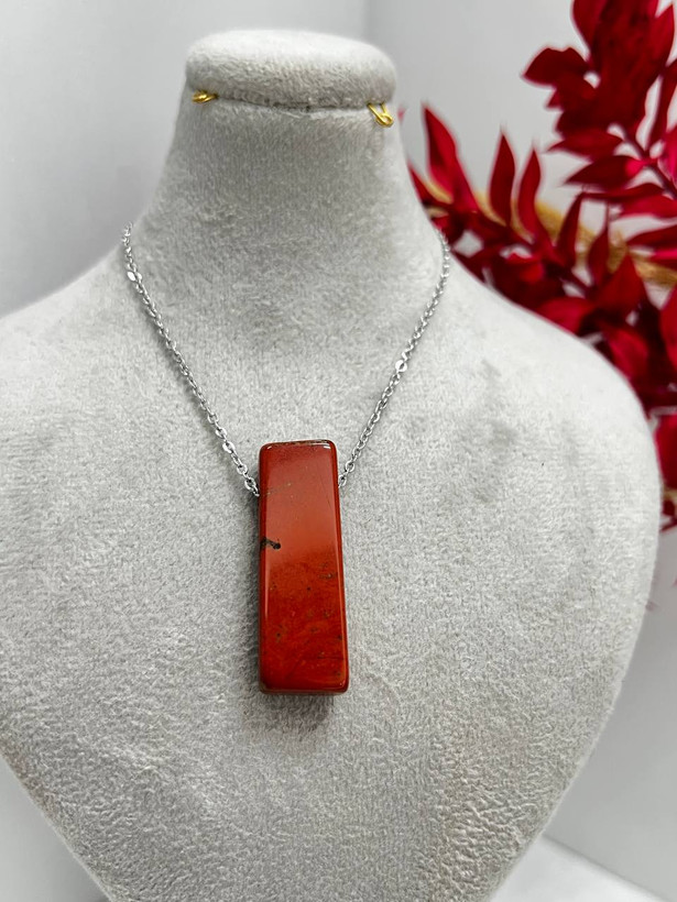 گردنبند سنگ جاسپر سرخ راف و معدنی ساخته شده با عشق خالص طبیعی و معدنی با خواص شگفت انگیز بهمراه زنجیر استیل ضد حساسیت