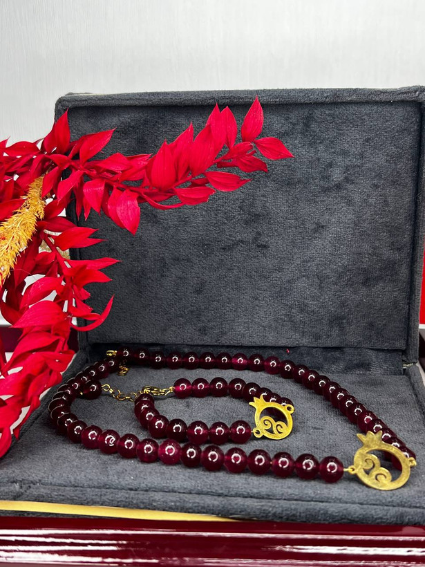 ست گردنبند ودستبند عقیق با پلاک انار0042