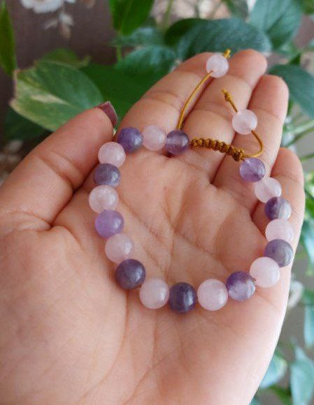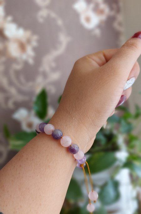دستبند رزکوارتز و آمتیست