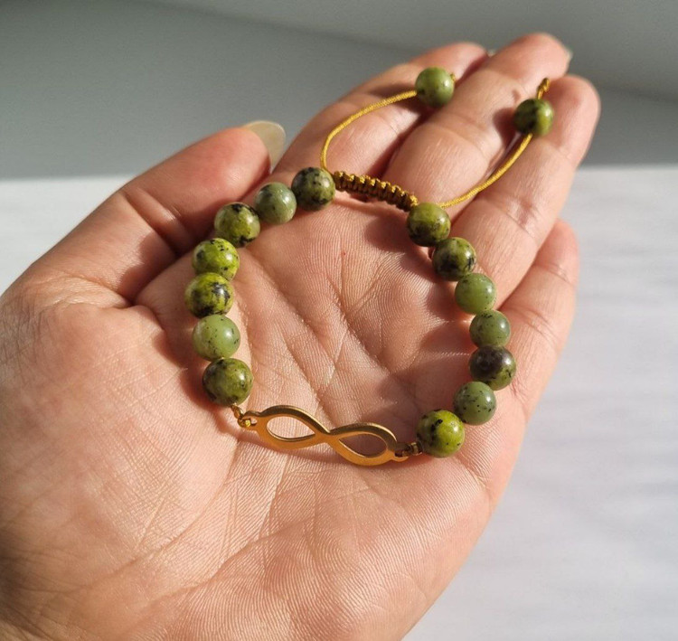 دستبند پلاک بینهایت و سنگ یشم سرپانتین