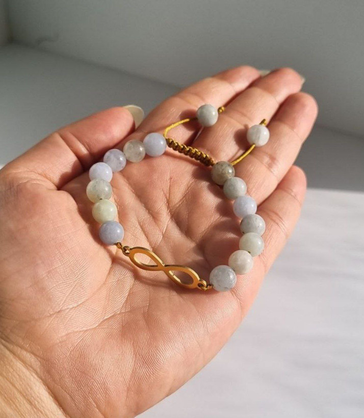 دستبند پلاک بینهایت و سنگ آکوامارین