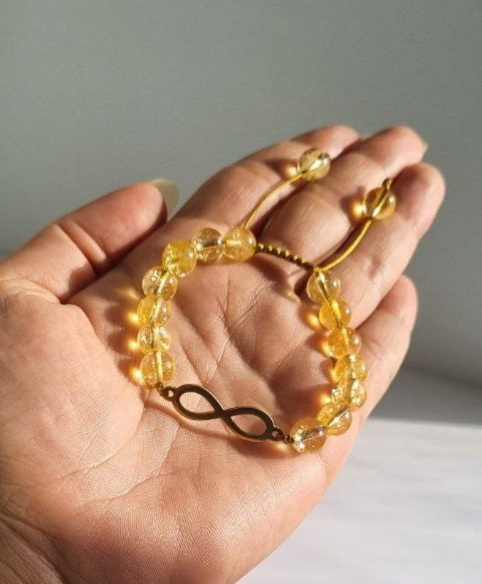 دستبند پلاک بینهایت و سنگ سیترین